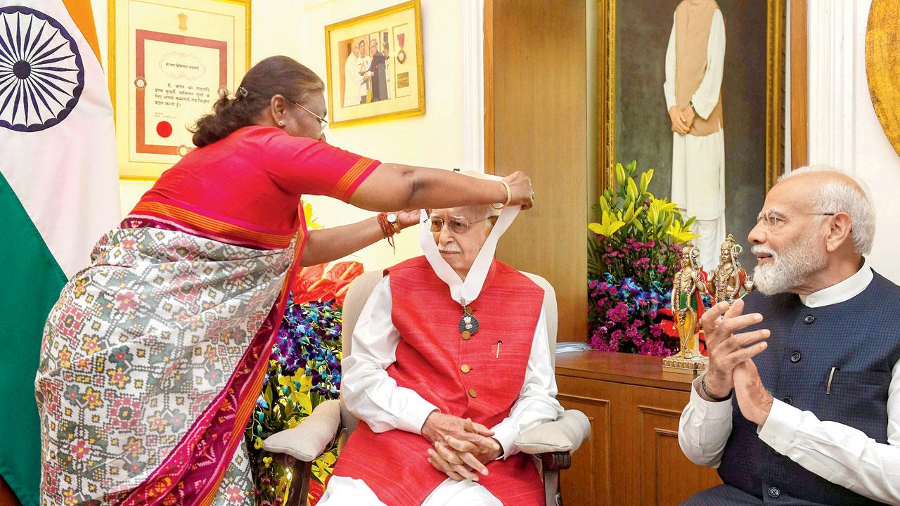 રાષ્ટ્રપતિએ ૯૬ વર્ષના દિગ્ગજ નેતાને સન્માનિત કર્યા ત્યારે વડા પ્રધાન નરેન્દ્ર મોદી તેમની બાજુમાં બેઠા હતા. ઍક્સ (ટ્વિટર) પર શૅર કરવામાં આવેલા ફોટો સાથે વડા પ્રધાને કહ્યું હતું કે ‘લાલ કૃષ્ણ અડવાણીને ભારત રત્ન એનાયત થયાના સાક્ષી બનવું એ ખૂબ જ ખાસ હતું. આ સન્માન આપણા રાષ્ટ્રની પ્રગતિમાં તેમના નિરંતર યોગદાનને દર્શાવે છે. લોકસેવા પ્રત્યેનું તેમનું સમર્પણ અને આધુનિક ભારતને ઘડવામાં તેમની મહત્ત્વની ભૂમિકાએ આપણા ઇતિહાસ પર અમીટ છાપ છોડી છે. મને ગર્વ છે કે છેલ્લા કેટલાક દાયકાઓમાં તેમની સાથે ખૂબ નજીકથી કામ કરવાની તક મળી છે.’