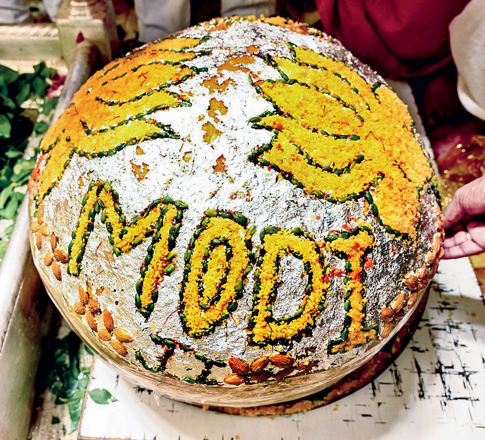 વારાણસીમાં મોદીના ૭૩મા જન્મદિવસે કાશી વિશ્વનાથ મંદિરમાં એક વિશાળ લાડુ બનાવાયો હતો