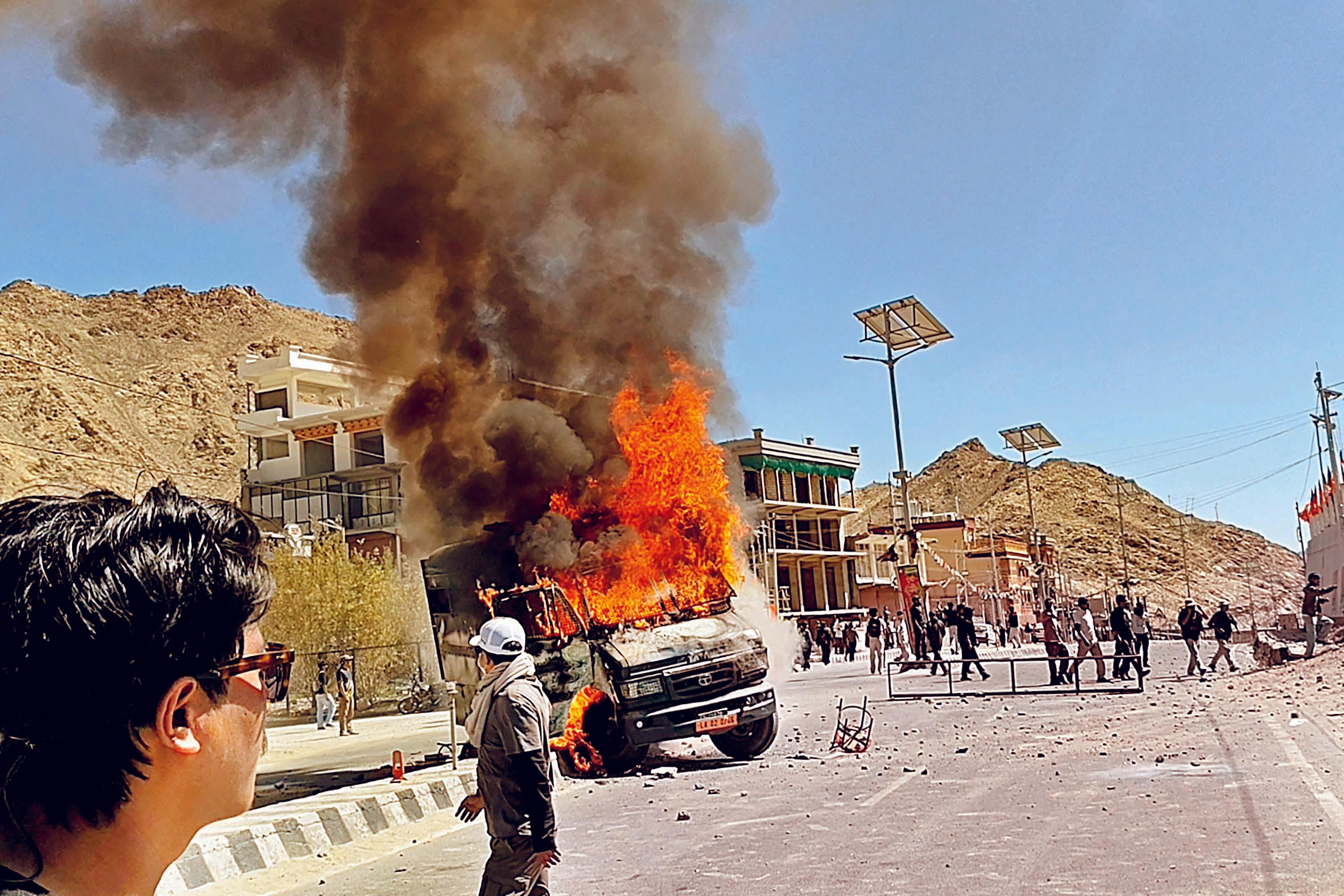 લદ્દાખને પૂર્ણ રાજ્યનો દરજ્જો આપવાની માગણી માટેનું આંદોલન અચાનક હિંસક બન્યું: ચાર જણનાં મોત, પચાસ ઘાયલ
