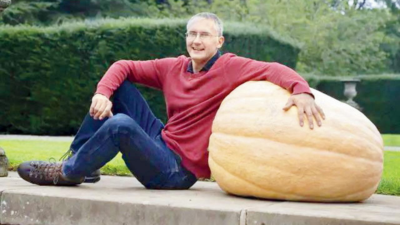 ક્રિસ પૅરિસ તેના ૧૦૨ કિલોના વિશાળ કોળા સાથે