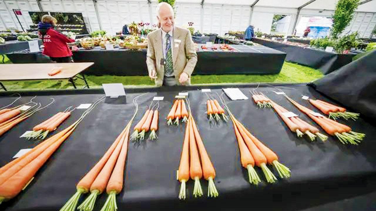 શાકભાજીની સ્પર્ધામાં ગાજરનું નિરીક્ષણ કરતા જજ