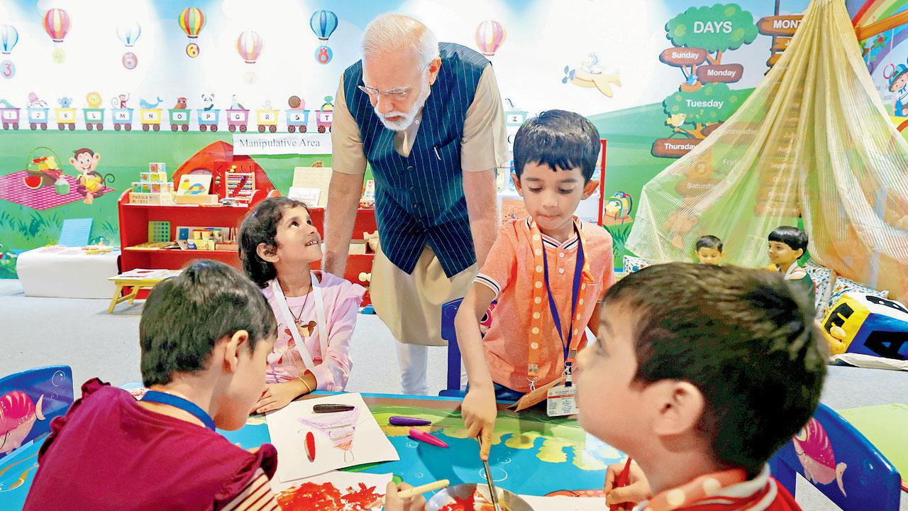 નવી દિલ્હીમાં ભારત મંડપમમાં અખિલ ભારતીય શિક્ષા સમાગમના ઉદ્ઘાટન દરમિયાન વડા પ્રધાન મોદી
