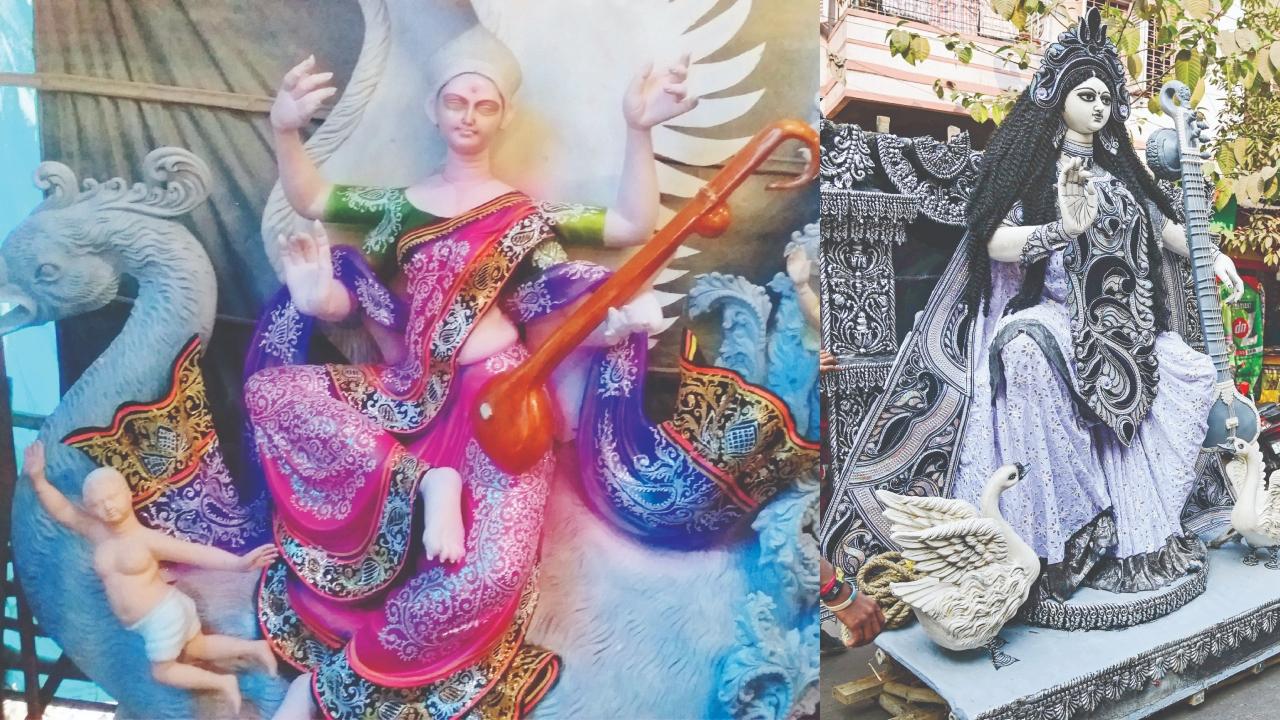 વસંતપંચમી નિમિત્તે કલકત્તામાં ટ્રેડિશનલ અને રાંચીમાં AI આધારિત સરસ્વતીદેવી આવી ગયાં છે