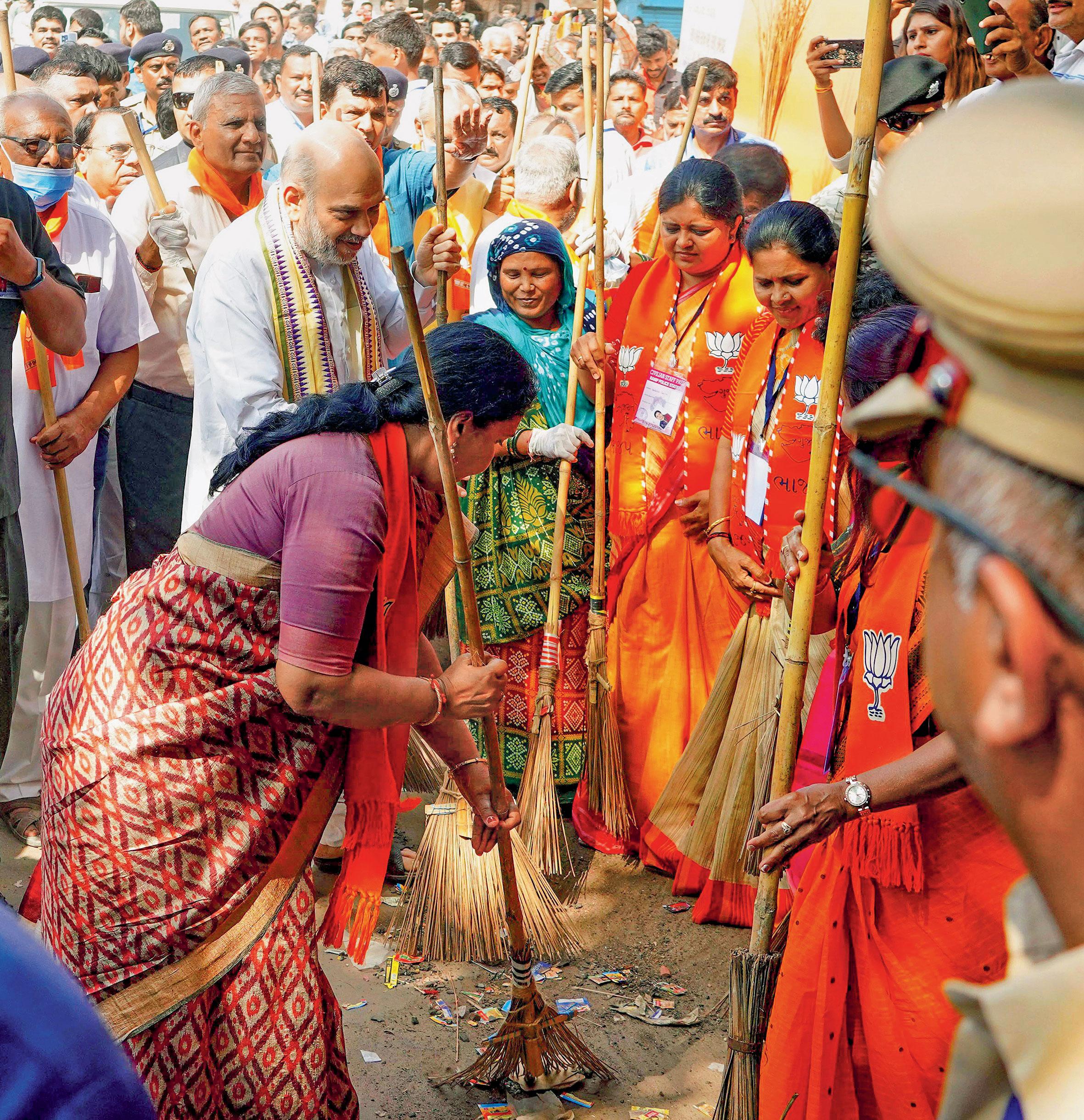 અમદાવાદમાં ગઈ કાલે ‘સ્વચ્છતા હી સેવા’ કૅમ્પેન હેઠળ સ્વચ્છતા ઝુંબેશમાં ભાગ લઈ રહેલા કેન્દ્રીય ગૃહપ્રધાન અમિત શાહ