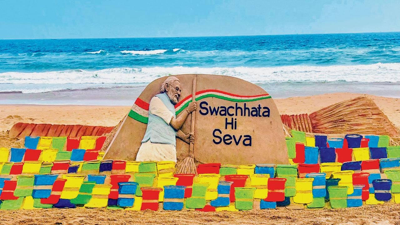 પુરીના બીચ પર ગઈ કાલે સૅન્ડ - આર્ટિસ્ટ સુદર્શન પટનાયકે સુંદર સૅન્ડ આર્ટ દ્વારા સ્વચ્છતાનો મેસેજ આપ્યો હતો