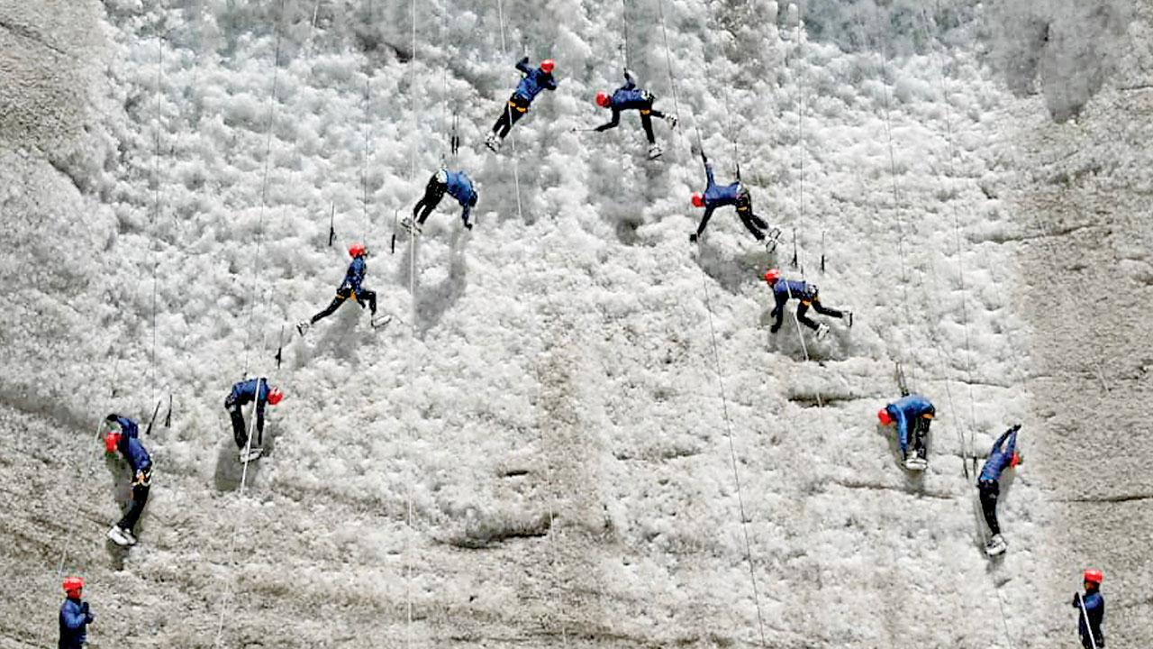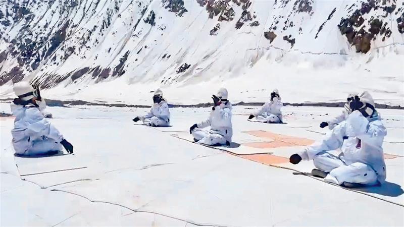 જગતના સૌથી ઊંચા યુદ્ધક્ષેત્ર ગણાતા સિયાચીનમાં ગઈ કાલે યોગ કરતા ઇન્ડિયન આર્મીના જવાનો.