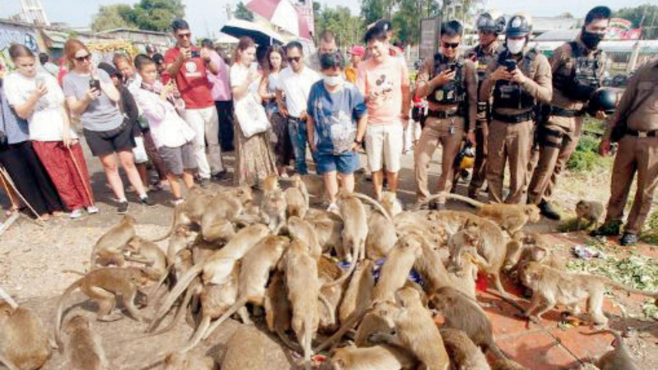થાઇલૅન્ડના લોપબુરી પ્રાંતમાં રવિવારે ઍન્યુઅલ મન્કી પાર્ટી ફેસ્ટિવલ દરમ્યાન વાંદરાઓએ જાતજાતનું ભોજન માણ્યું હતું. મોટી સંખ્યામાં ટૂરિસ્ટ્સે આ ફેસ્ટિવલને ખૂબ એ્ન્જૉય કર્યો હતો. તેમણે પણ વાંદરાઓને ફૂડ ખવડાવ્યું હતું.