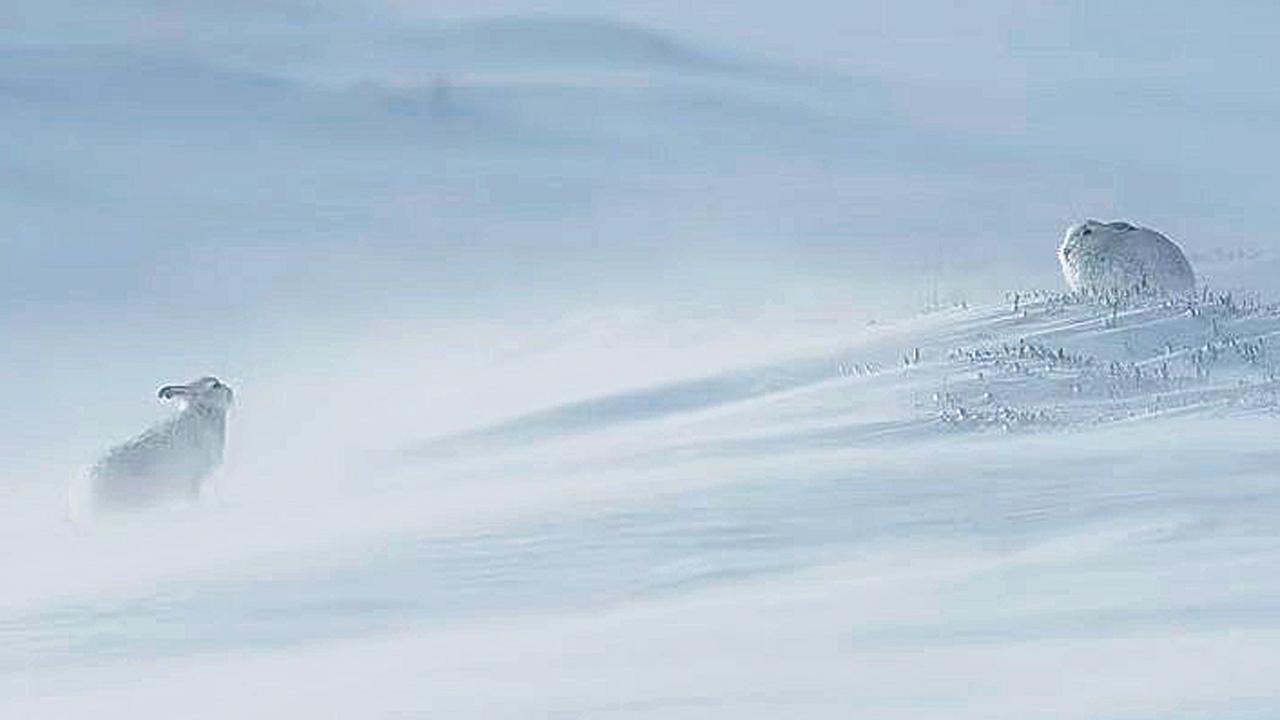 પર્વતમાં રહેતાં સસલાંના આ ફોટાગ્રાફ રનર્સ-અપ રહ્યા હતા. ફોટોગ્રાફર પીટર બર્થોલોમ્યુએ પોતાનો અનુભવ વર્ણવતાં કહ્યું કે ભારે હિમવર્ષા થઈ રહી હતી એને કારણે દૃશ્ય ધૂંધળું હતું. ટેકરીની થોડી ઉપર રહેલા માદા સસલા તરફ નર સસલું આગળ વધી રહ્યું હતું, પરંતુ થોડું અટક્યું ત્યારે મેં આ ક્ષણ કચકડામાં ઝીલી લીધી હતી.