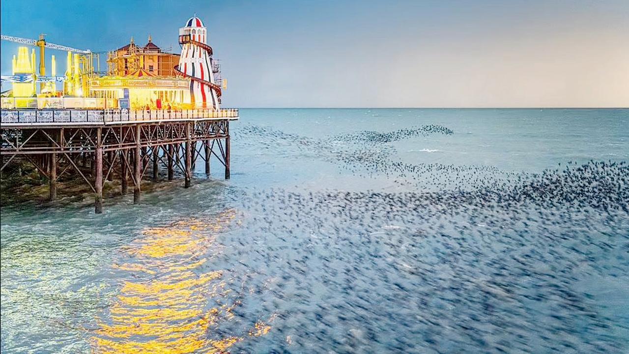અર્બન વાઇલ્ડલાઇફ કૅટેગરીમાં આ ફોટોગ્રાફને રનર-અપ ઇનામ મળ્યું છે. મૅથ્યુ કેટલેએ પોતાનો અનુભવ વર્ણવતાં કહ્યું કે વાવાઝોડું આવી રહ્યું હોવાને કારણે ક્ષિતિજમાં વધુ પ્રકાશ હતો. પ્રકાશ ઓછો થતો હતો ત્યારે પક્ષીઓનું ટોળું પાછું માળા તરફ આવી રહ્યું હતું. એના ભવ્ય વળાંક અને એનાં પ્રતિબિંબોએ એક અદ્ભુત દૃશ્ય સરજ્યું હતું.