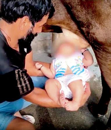 સોશ્યલ મીડિયા પર એક વિડિયો વાઇરલ થયો છે જેમાં એક માણસ પોતાના બાળકને ડાયરેક્ટ ગાયના આંચળમાંથી દૂધ પીવડાવતો નજરે પડે છે. આ વિડિયો જોઈને લોકો તેના પર ભડકી ઊઠ્યા છે