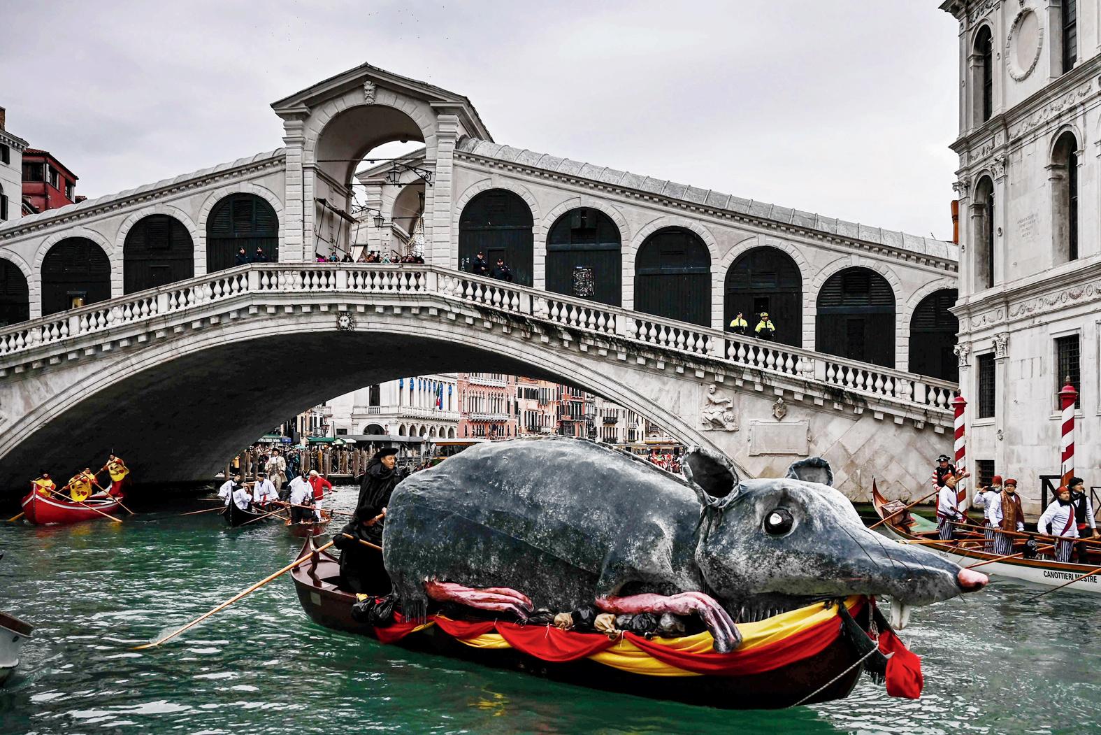 ઇટલીના વેનિસ શહેરમાં શનિવારે આયોજિત વેનિસ કાર્નિવલ દરમ્યાન હોડીની પરેડ યોજાઈ હતી.