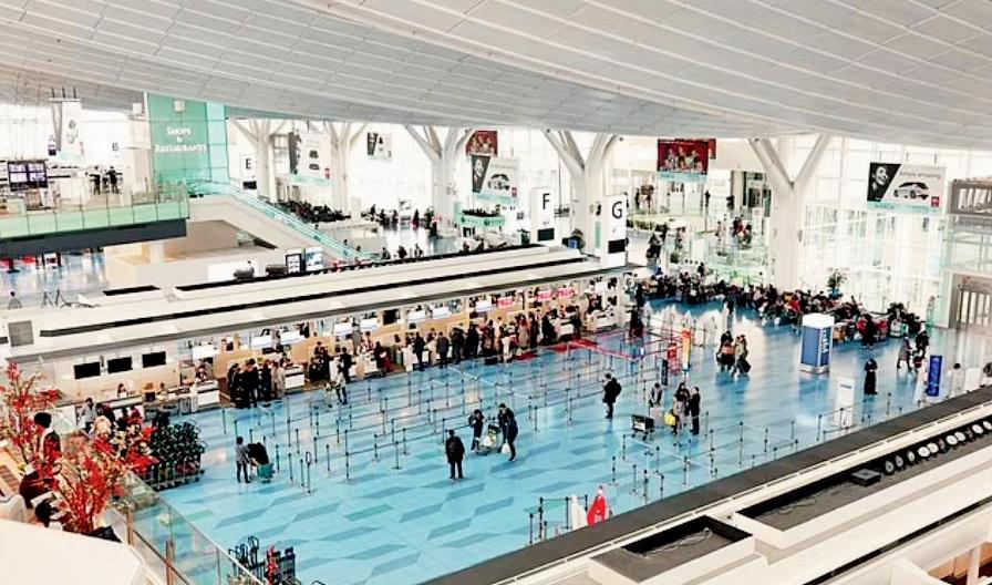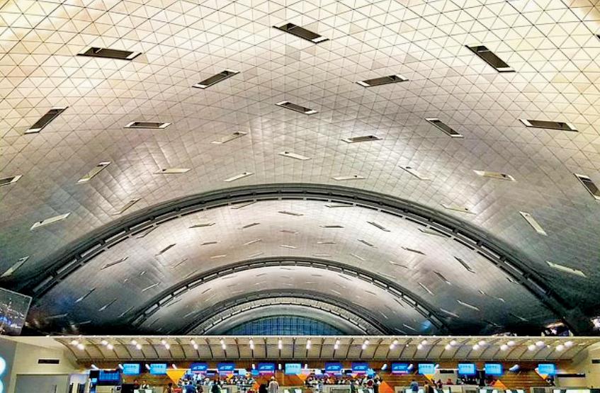 દોહાનું હમદ ઇન્ટરનૅશનલ ઍરપોર્ટ (ઉપર) અને ટોક્યોમાં હનેડા ઍરપોર્ટ (નીચે.)