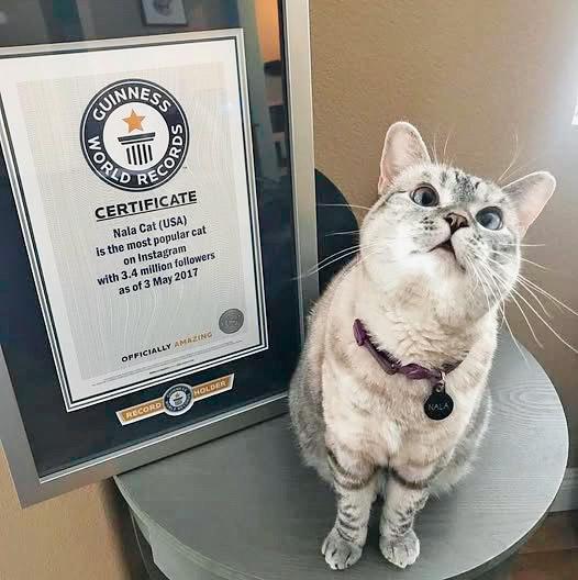 અમેરિકાના કૅલિફૉર્નિયામાં નાલા નામની એક બિલાડી છે જે અબજોપતિ છે. આ સંપત્તિ તેને માલિક તરફથી દાનમાં મળેલી નથી, તેણે જાતે કરેલી મહેનતથી કમાઈ છે. તાજેતરમાં આ નાલાબહેનને ગિનેસ વર્લ્ડ રેકૉર્ડ્સમાં પણ સ્થાન મળ્યું છે. એનું કારણ છે તેમના ૪૪ લાખ ફૉલોઅર્સ. સૌથી વધુ ફૉલોઅર્સ ધરાવતા પ્રાણીનું સોશ્યલ મીડિયા અકાઉન્ટ નાલાબહેનનું છે. ૨૦૧૦માં આ બિલાડી જન્મી ત્યારે રસ્તા પર હતી અને પછી શેલ્ટર-હોમમાં આશ્રય પામી.