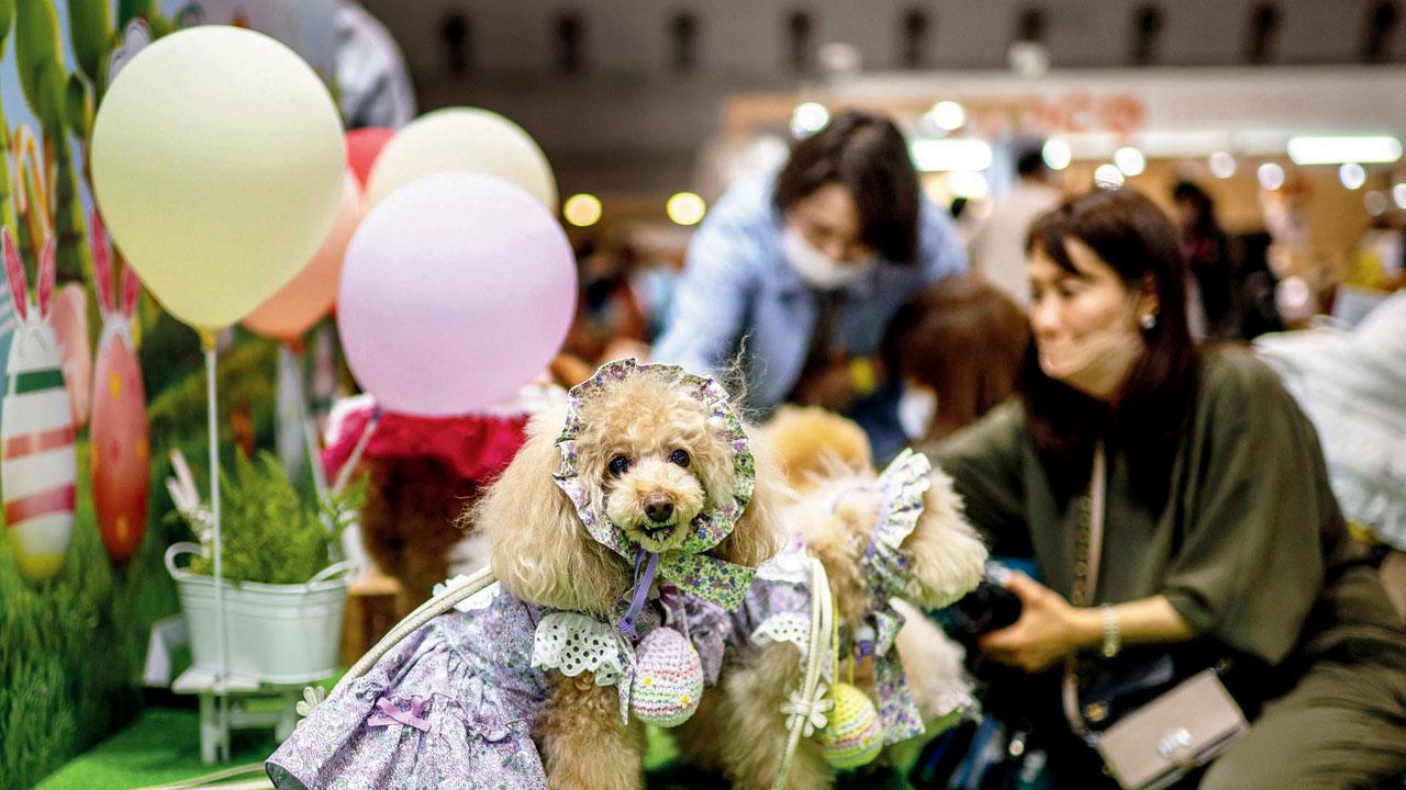 જપાનની રાજધાની ટોક્યોમાં ગઈ કાલે પેટ્સ સંબંધિત પ્રોડક્ટ્સ અને સેવાઓ એક જ મંચ પર પ્રદર્શિત કરતો સૌથી મોટો આંતરરાષ્ટ્રીય મેળો ‘ઇન્ટરપેટ્સ’ યોજાયો હતો, જેમાં ફોટોબૂથ પર ડૉગીઓ ફૅન્સી ડ્રેસમાં જોવા મળ્યા હતા. એએફપી