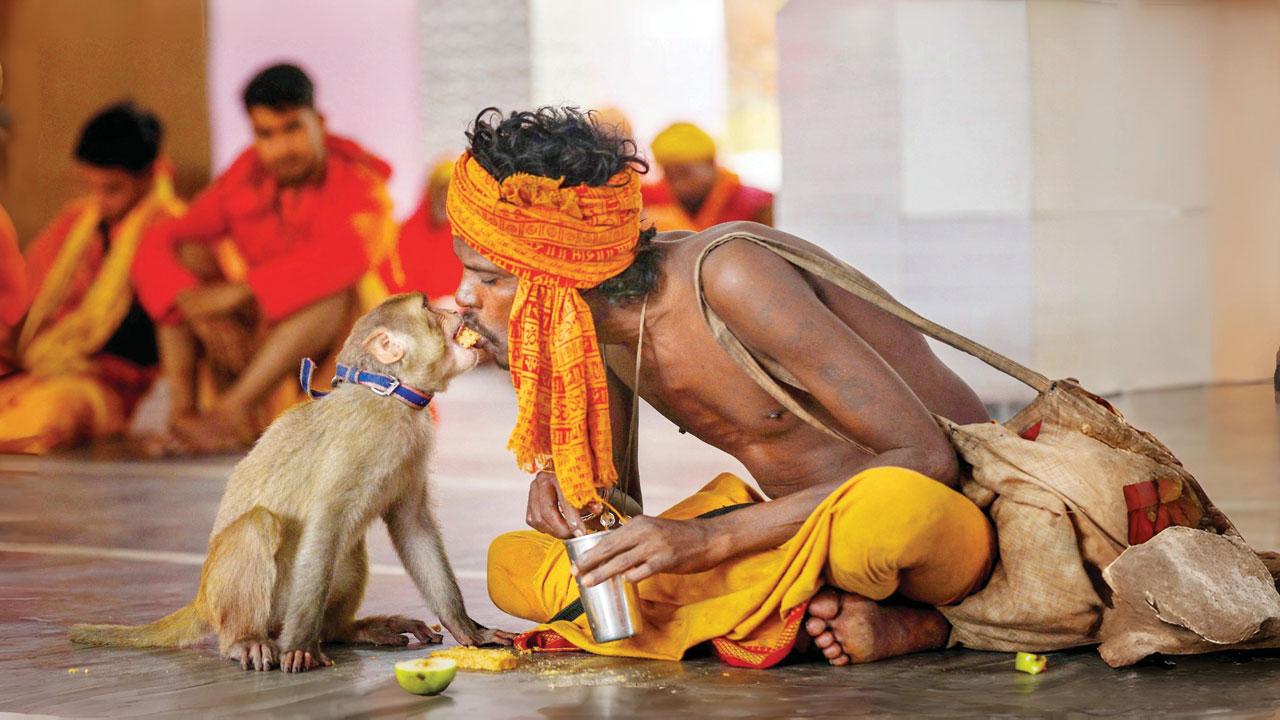 જમ્મુમાં અમરનાથ યાત્રાના રામ મંદિર બેઝ કૅમ્પમાં એક સાધુ અને એક વાનર વચ્ચે અનોખો સ્નેહ જોવા મળ્યો હતો.