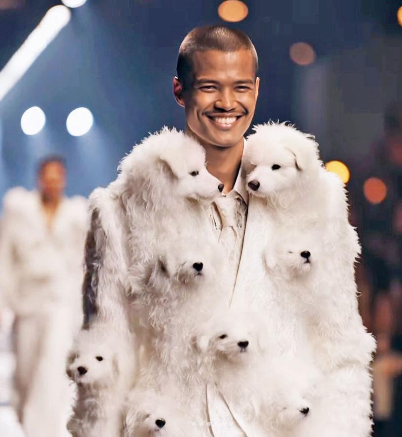 ઇન્સ્ટાગ્રામ પર વૉગ પ્રોડક્ટ્સ નામના હૅન્ડલ પરથી ખાસ પ્રકારના કૉસ્ચ્યુમ્સ પહેરીને મૉડલો ફરતાં હોય એવા વિડિયો પોસ્ટ થયા છે. એમાં મહિલા મૉડલોએ જાણે જીવતીજાગતી બિલાડીઓ કપડાંમાં ભરાવી હોય એવો ભાસ થાય છે. બિલાડીના ફર જેવું જ ફૅબ્રિક ધરાવતી બિલાડીઓ જાણે અસલી હોય એવો ભાસ આર્ટિફિશ્યલ ઇન્ટેલિજન્સ (AI) દ્વારા આપવામાં આવ્યો હતો, જ્યારે પુરુષ મૉડલો માટેનાં કપડાંમાં વિવિધ બ્રીડના ડૉગીઝના ફર જેવું ફૅબ્રિક વપરાયું છે. એમાં મિનિએચર સાઇઝના ડૉગી હોવાથી એ અસલી નથી એવી તરત ખબર પડી જાય છે,