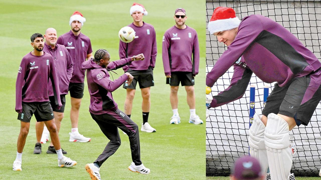 પ્રૅક્ટિસ-સેશન દરમ્યાન ઇંગ્લૅન્ડના કેટલાક પ્લેયર્સના માથા પર જોવા મળી હતી સૅન્ટા કૅપ. ઇંગ્લૅન્ડનો વિસ્ફોટક બૅટર હૅરી બ્રૂક સૅન્ટાની રેડ-વાઇટ કૅપ પહેરીને બૅટિંગ-પ્રૅક્ટિસ કરતો જોવા મળ્યો