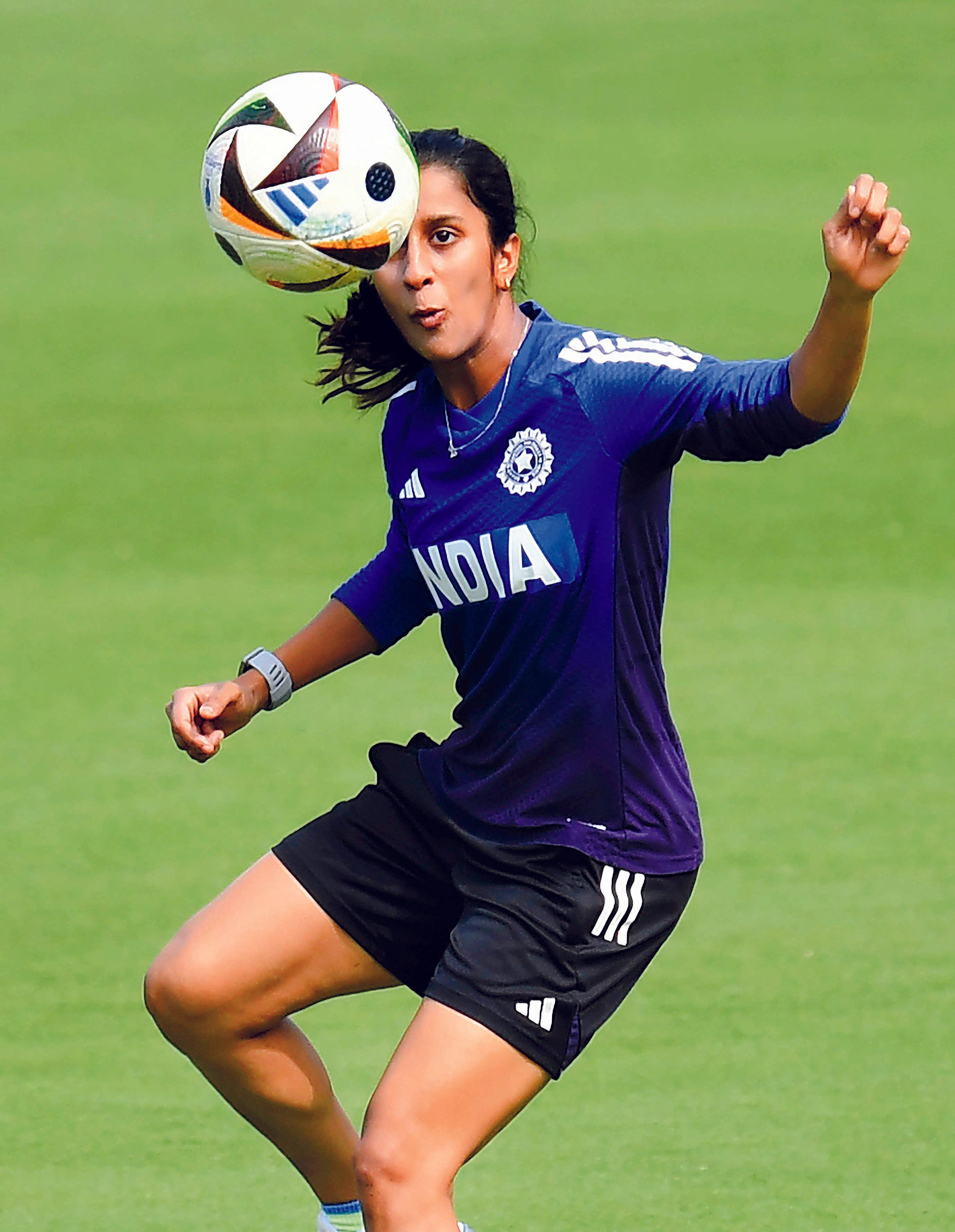 ગઈ કાલે ડી. વાય. પાટીલ સ્ટેડિયમમાં ફુટબૉલ રમતી અને પોતાના ડૉગી સાથે મસ્તી કરતી જેમિમા રૉડ્રિગ્સ.