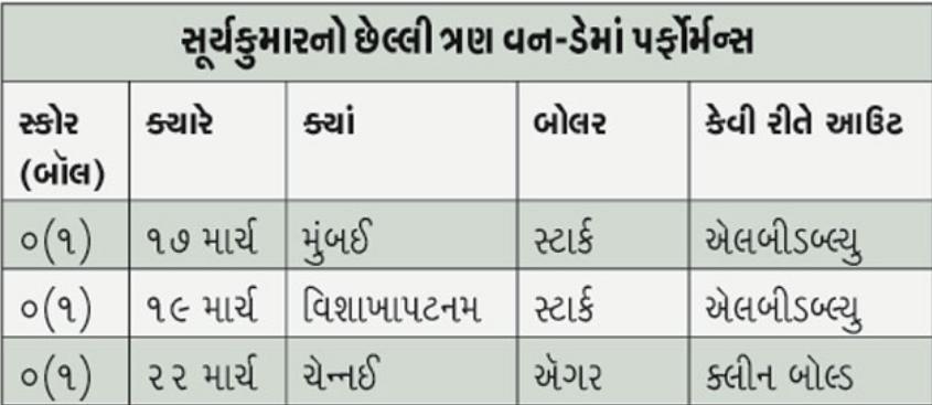 ભારત ગઈ કાલે ચેન્નઈમાં ઑસ્ટ્રેલિયા સામે હારી ગયું એ પહેલાં ટી૨૦ ઇન્ટરનૅશનલ ક્રિકેટના આપણા વર્લ્ડ નંબર-વન બૅટર સૂર્યકુમાર યાદવે તેના કરોડો ચાહકોને નારાજ કરી દીધા હતા. તે ઉપરાઉપરી ત્રીજી વન-ડેમાં પોતાના પહેલા જ બૉલમાં આઉટ થઈ જતાં તેના નામે ગોલ્ડન ડકની હૅટ-ટ્રિક નોંધાઈ ગઈ છે. જોકે સૂર્યકુમાર લાગલગાટ ત્રણ વન-ડેમાં પહેલા બૉલે ઝીરો પર વિકેટ ગુમાવનારો પ્રથમ ભારતીય જરૂર છે, પરંતુ આવો ખરાબ રેકૉર્ડ નોંધાવનાર તે વિશ્વનો ૧૪મો ખેલાડી છે. સચિન તેન્ડુલકર સહિત બીજા કુલ પાંચ ખેલાડી વન-ડેમાં ગોલ્ડન-ડકની હૅટ-ટ્રિક કરી ચૂક્યા છે, પરંતુ એમાંથી એકેય ખેલાડીએ સતત ત્રણેય વખત પહેલા બૉલમાં વિકેટ નહોતી ગુમાવી.