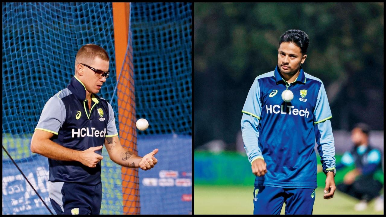 ગઈ કાલે પ્રૅક્ટિસ દરમ્યાન ઑસ્ટ્રેલિયન સ્પિનર ઍડમ ઝૅમ્પા અને તનવીર સાંઘા.