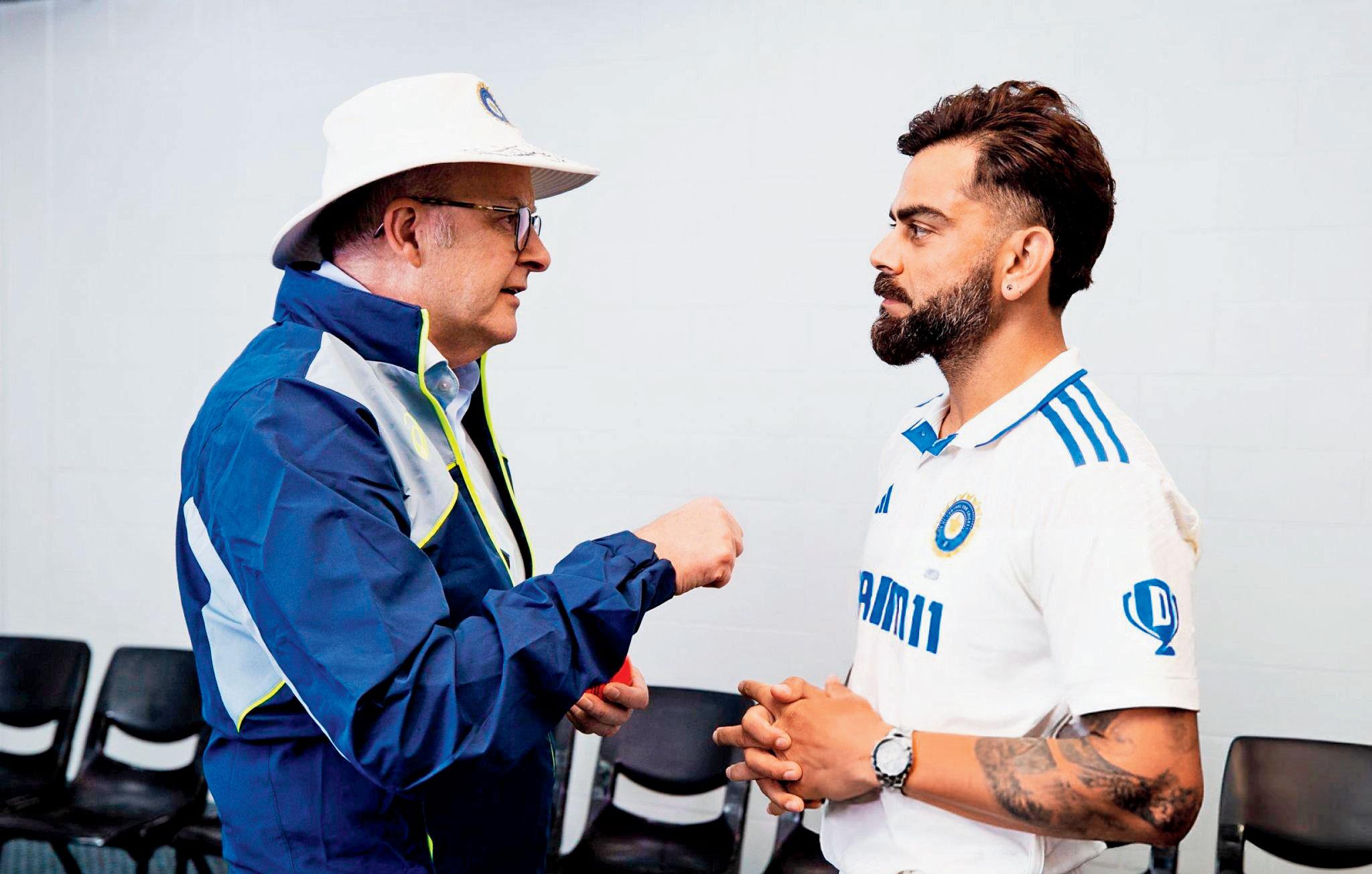 પ્રૅક્ટિસ મૅચ પહેલાં સ્ટાર બૅટર વિરાટ કોહલી સાથે વાત કરવાની તક ઝડપી લીધી ઑસ્ટ્રેલિયન પ્રાઇમ મિનિસ્ટરે.