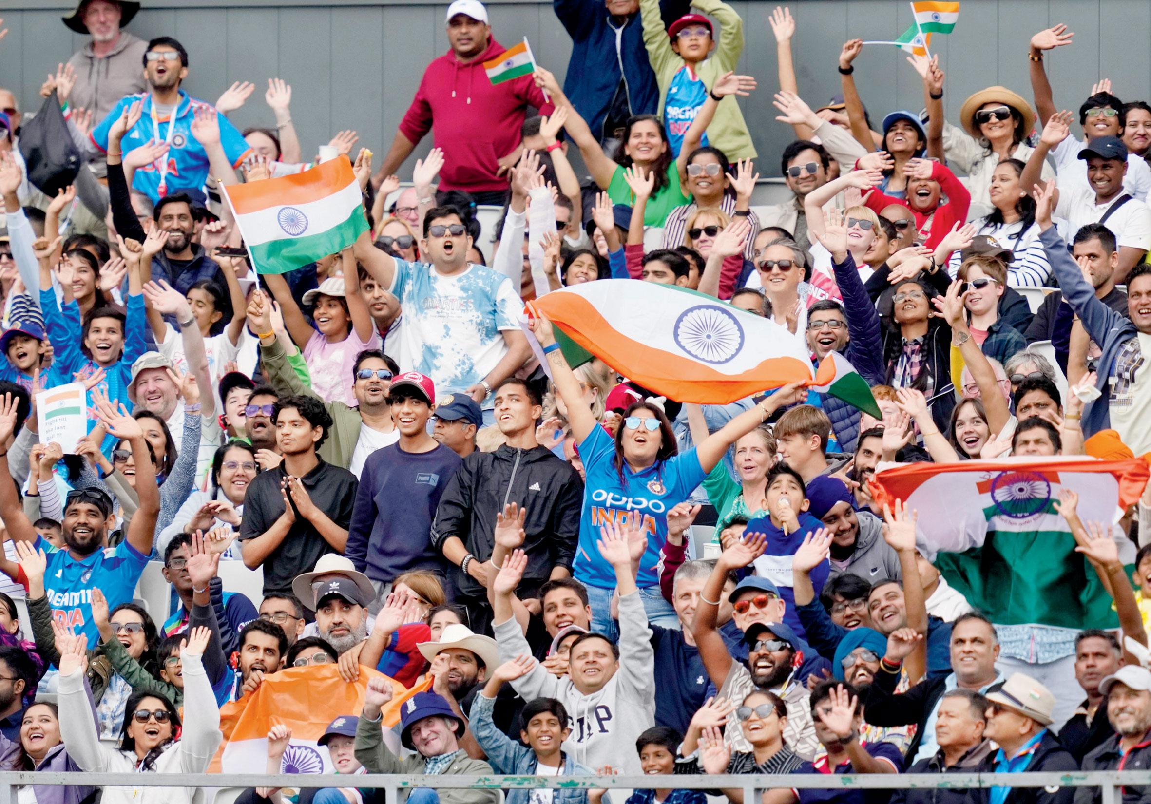 મૅન્ચેસ્ટરમાં ગઈ કાલે ભારત અને ઇંગ્લૅન્ડની ચોથી ટેસ્ટ-મૅચના પાંચમા દિવસે ટીમ ઇન્ડિયાને સપોર્ટ કરવા માટે મોટી સંખ્યામાં ભારતીય ફૅન્સ આવ્યા હતા.