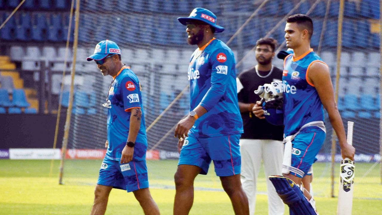 વાનખેડેમાં ગઈ કાલે ઑલરાઉન્ડર અર્જુન તેન્ડુલકરે (ઉપર) બોલિંગની પ્રૅક્ટિસ ઉપરાંત બૅટિંગ-કોચ પોલાર્ડની દેખરેખમાં બૅટિંગની ઘણી પ્રૅક્ટિસ પણ કરી હતી. મુંબઈમાં ગઈ કાલે સવારથી વાદળિયું હવામાન હતું અને એવા માહોલમાં રોહિત શર્માની ટીમે જરૂરી પ્રૅક્ટિસ કરી લીધી હતી. આશિષ રાજે