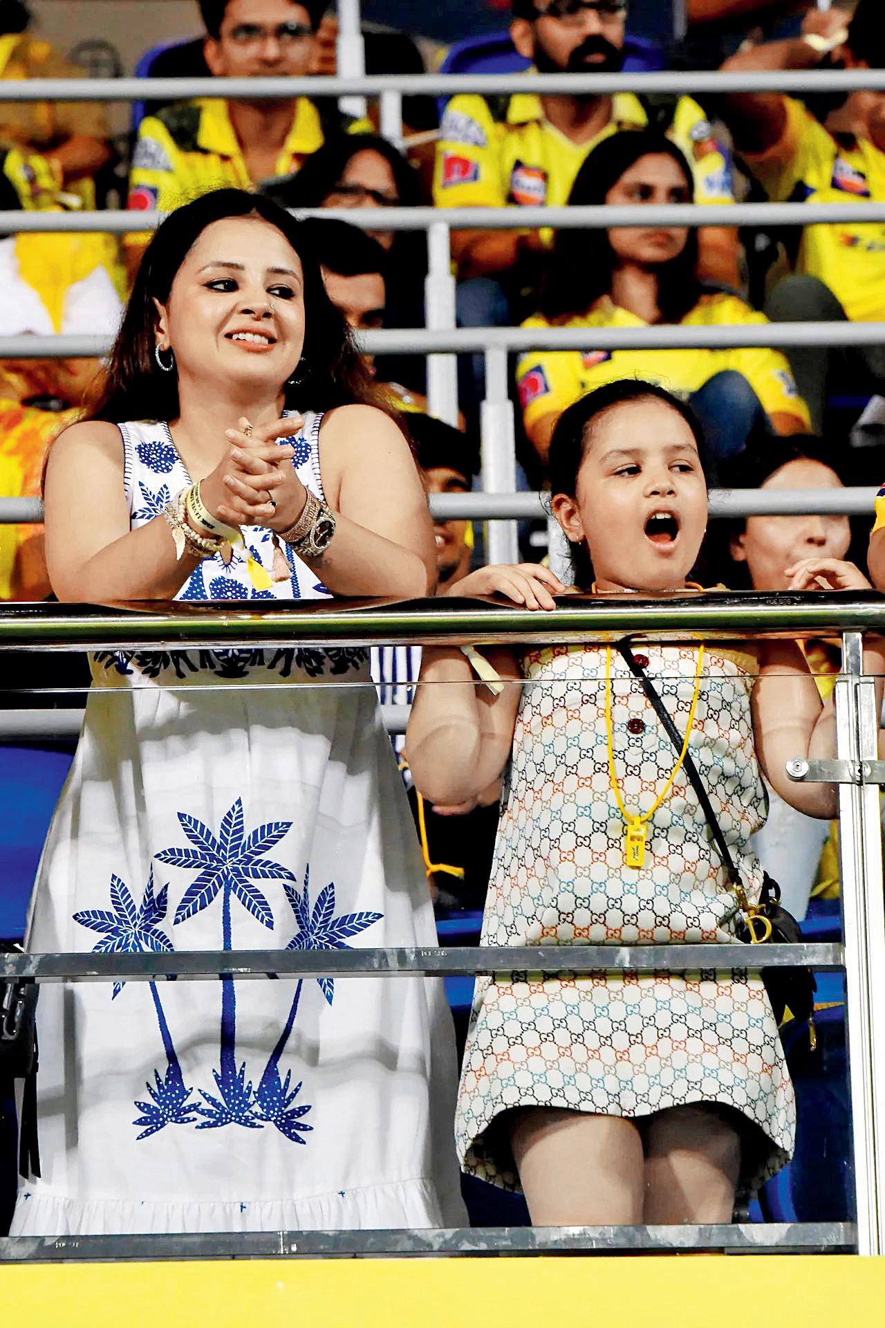 રવિવારે ચેન્નઈના વીઆઇપી સ્ટૅન્ડમાં ધોનીની પત્ની સાક્ષી અને પુત્રી ઝિવા પણ બેઠી હતી.