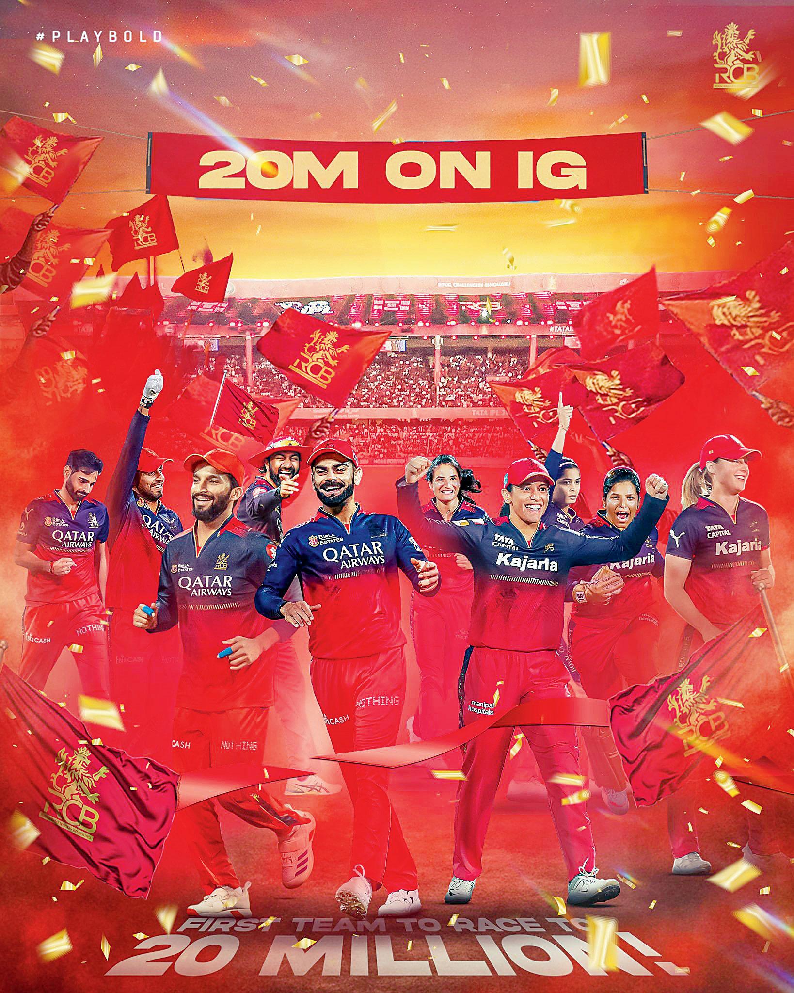 ઇન્સ્ટાગ્રામ પર ૨૦ મિલ્યન ફૉલોઅર્સ ધરાવતી પહેલવહેલી IPL ટીમ બની RCB