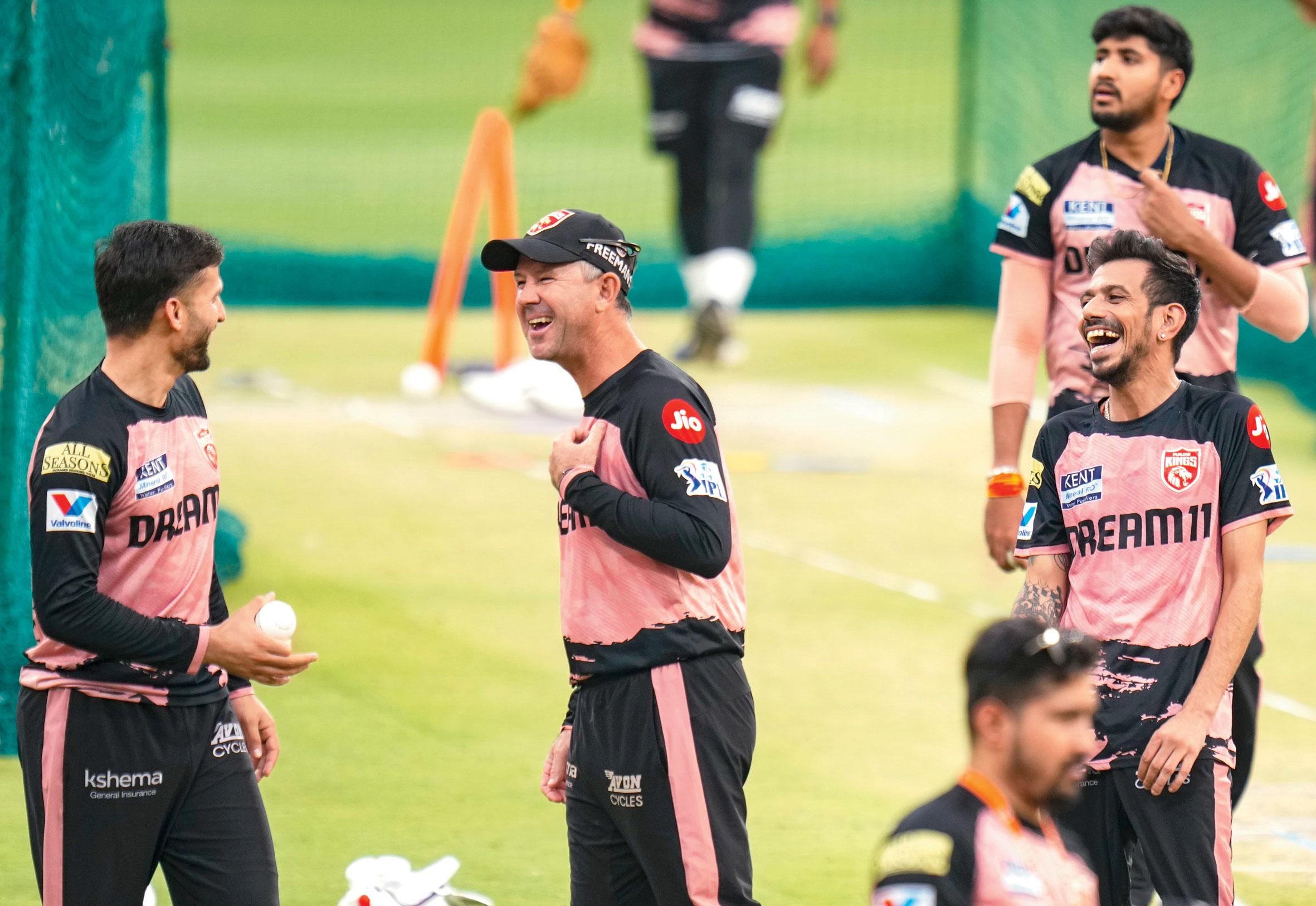 ગઈ કાલે ન્યુ ચંડીગઢના મહારાજ યદવિન્દ્ર સિંહ ઇન્ટરનૅશનલ ક્રિકેટ સ્ટેડિયમમાં પંજાબ કિંગ્સનો હેડ કોચ રિકી પૉન્ટિંગ પોતાની ટીમના પ્લેયર્સ યુઝવેન્દ્ર ચહલ અને અઝમતુલ્લાહ ઓમરઝાઈ સાથે.