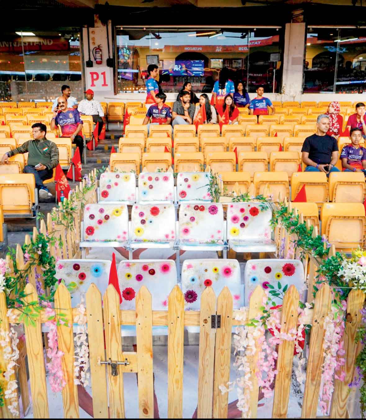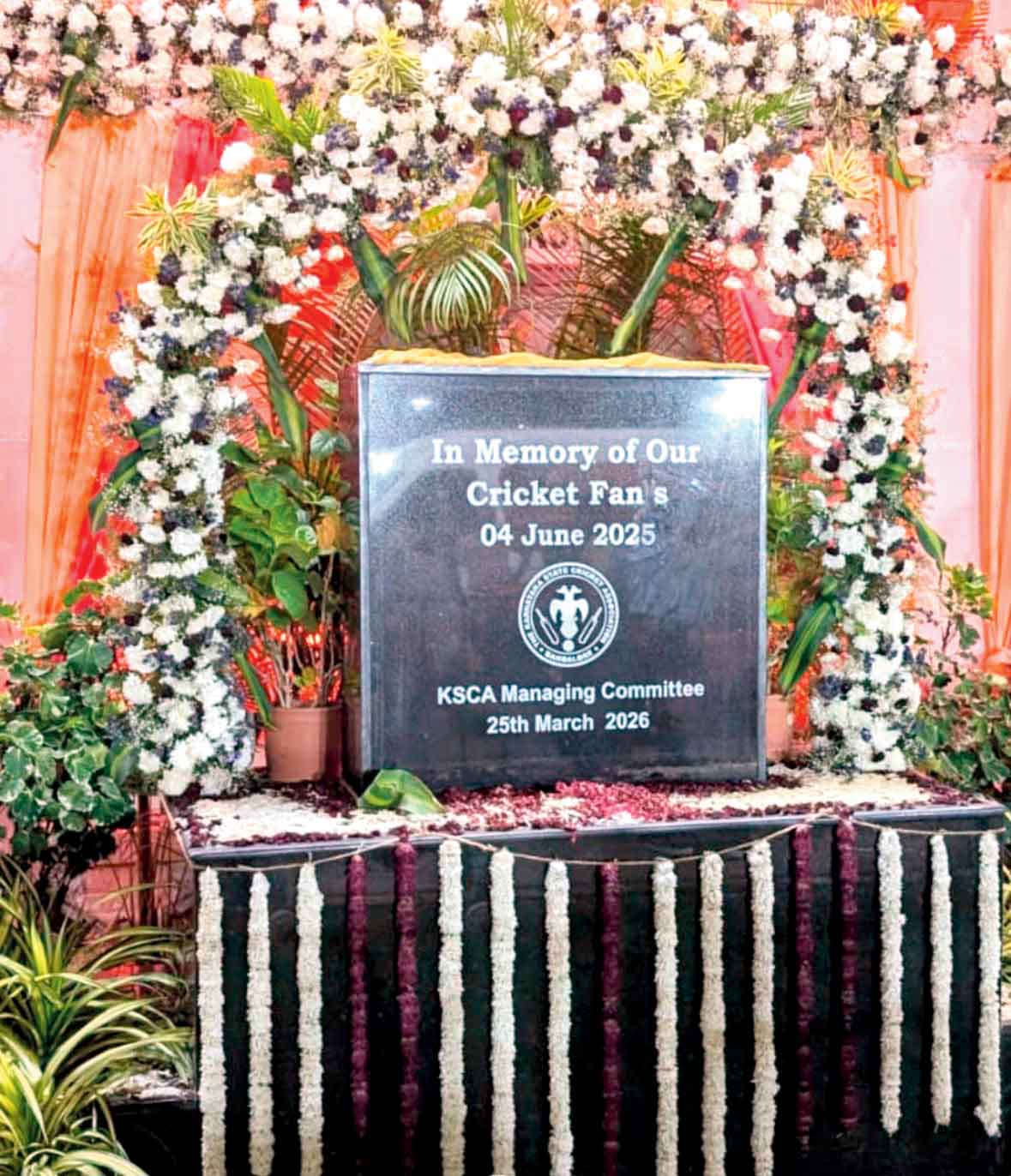 ગઈ કાલે એમ. ચિન્નાસ્વામી સ્ટેડિયમમાં ૧૧ દિવંગત ફૅન્સની યાદમાં ઓપનિંગ સેરેમની વગર IPL 2026ની શરૂઆત થઈ હતી. ગયા વર્ષે જીતની ઉજવણી દરમ્યાનની નાસભાગમાં જીવ ગુમાવનાર ૧૧ ફૅન્સ માટે સ્મારક-તકતી અને ૧૧ ખાલી સીટ કર્ણાટક સ્ટેટ અસોસિએશને બે દિવસ પહેલાંથી જ સેટ કરી દીધી હતી. મૅચ દરમ્યાન એના પર પુષ્પો જોવા મળ્યાં હતાં.