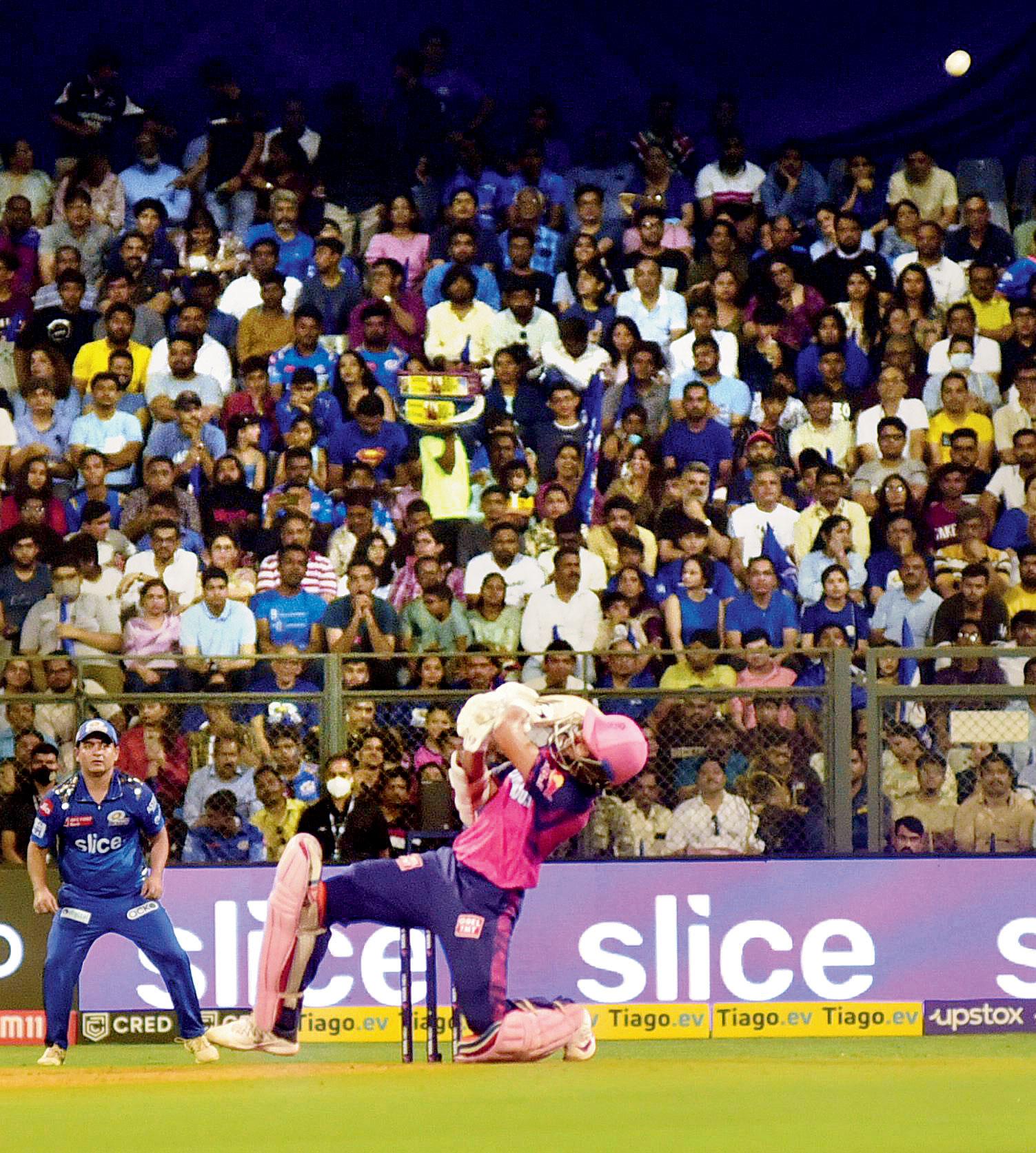 રાજસ્થાન રૉયલ્સનો ઓપનર યશસ્વી જયસ્વાલ ગઈ કાલે વાનખેડેમાં મુંબઈ ઇન્ડિયન્સ સામેની મૅચમાં તેના બેસ્ટ ફૉર્મમાં હતો. તેણે માત્ર ૬૨ બૉલમાં ૮ સિક્સર અને ૧૬ ફોર ફટકારી હતી. તે આઇપીએલની ૧૬મી સીઝનમાં હૈદરાબાદના હૅરી બ્રુક અને કલકત્તાના વેન્કટેશ ઐયર પછીનો ત્રીજો સેન્ચુરિયન બન્યો હતો. વેન્કટેશે પણ વાનખેડેમાં મુંબઈ સામે સદી ફટકારી હતી. ગઈ કાલે યશસ્વીના ૧૨૪ રનની મદદથી રાજસ્થાને ૨૦ ઓવરમાં ૭ વિકેટે ૨૧૨ રન બનાવ્યા હતા. યશસ્વીએ જૉસ બટલર સાથે ૭૨ રનની જે ઓપનિંગ પાર્ટનરશિપ કરી હતી એમાં બટલરના માત્ર ૧૮ રન હતા. તસવીર અતુલ કાંબળે