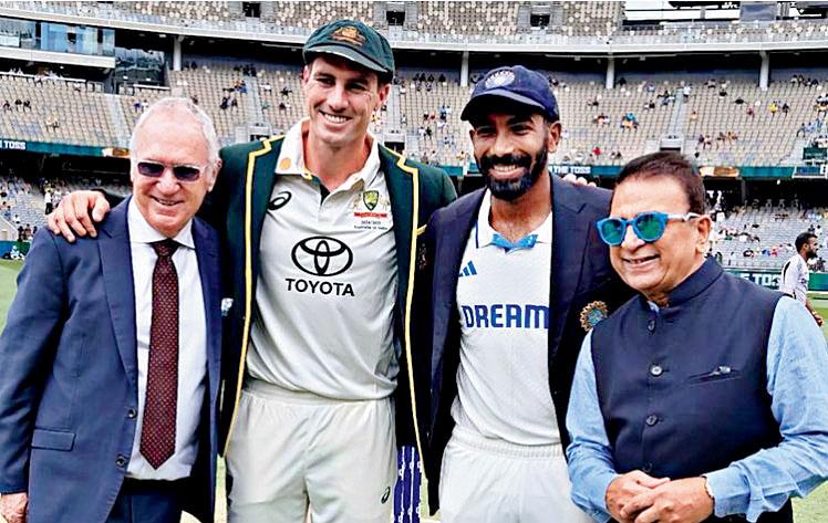 ગઈ કાલે પર્થમાં બૉર્ડર-ગાવસકર ટ્રોફીની પાંચ ટેસ્ટની સિરીઝની પહેલી મૅચ શરૂ થઈ એ પહેલાં બન્ને ટીમના કૅપ્ટનો પૅટ કમિન્સ અને જસપ્રીત બુમરાહે ઍલન બૉર્ડર અને સુનીલ ગાવસકર સાથે ફોટો પડાવ્યો હતો.
