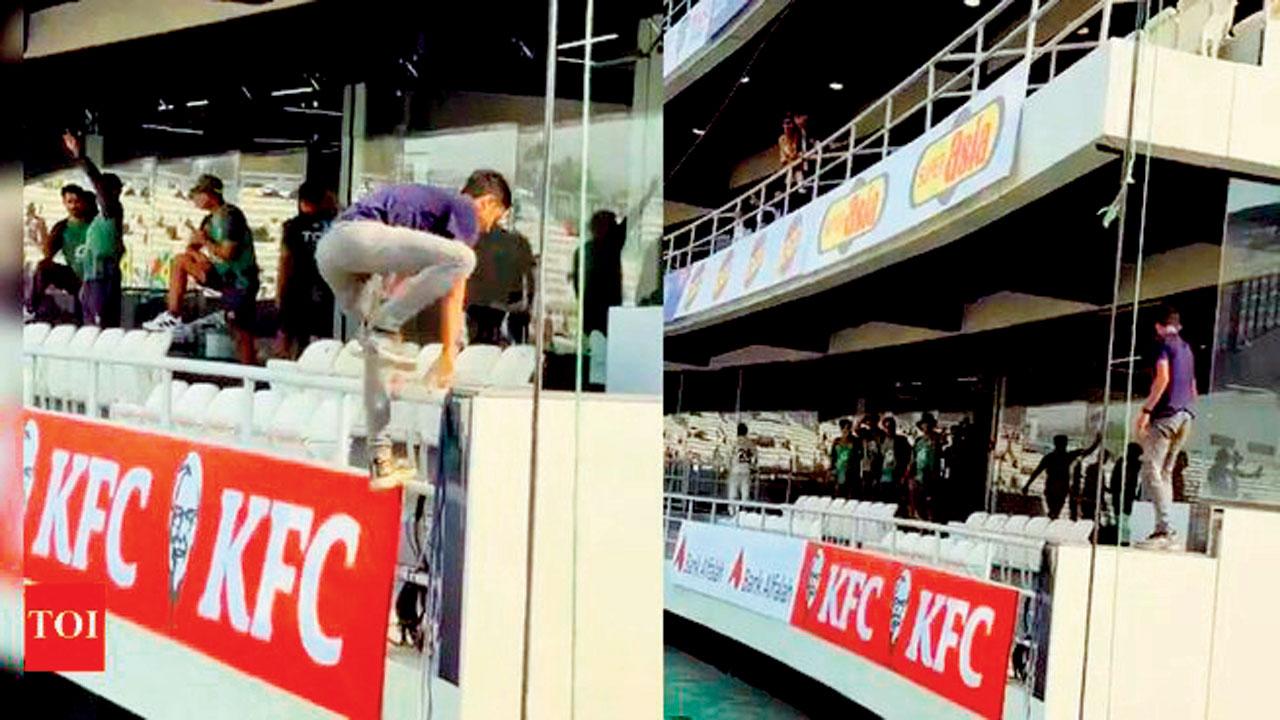 લાહોરમાં આયોજિત પાકિસ્તાન અને સાઉથ આફ્રિકાની ટેસ્ટ-મૅચના અંતિમ દિવસનો એક વિડિયો સોશ્યલ મીડિયા પર ભારે વાઇરલ થયો છે. ગદાફી સ્ટેડિયમમાં ચોથા દિવસની રમત દરમ્યાન એક ચાહક દીવાલ ચડીને પાકિસ્તાન ક્રિકેટ ટીમના પહેલા માળે આવેલા ડ્રેસિંગ-રૂમમાં પહોંચી ગયો હતો. જોકે કોચિંગ સ્ટાફના લોકોએ તેને ડ્રેસિંગ-રૂમની અંદર જતાં રોક્યો હતો અને સિક્યૉરિટીને બોલાવી તેને પકડાવ્યો હતો. સુરક્ષા અધિકારીઓ સમયસર તેને ડ્રેસિંગ-રૂમથી દૂર લઈ ગયા હતા. અહેવાલ અનુસાર બુધવારે બાબર આઝમની ૩૧મી વર્ષગાંઠ હતી અને તે યંગ ચાહક ડ્રેસિંગ-રૂમમાં તેને મળવા માગતો હતો. વિડિયો વાઇરલ થતાં પાકિસ્તાનમાં ક્રિકેટર્સની સુરક્ષા-વ્યવસ્થા અંગે મોટા સવાલો ઊભા થયા છે.