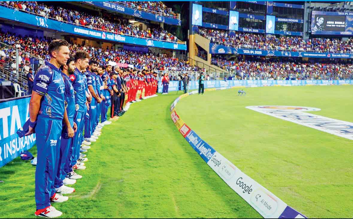 ગઈ કાલે મુંબઈ અને બૅન્ગલોરની મૅચ પહેલાં વાનખેડે સ્ટેડિયમમાં પ્લેયર્સ અને ફૅન્સે દિવંગત આશા ભોસલે માટે મૌન પાળ્યું હતું. બન્ને ટીમના પ્લેયર્સ આ મહાન સિંગરને શ્રદ્ધાંજલિ આપવા માટે કાળી પટ્ટી પહેરીને ધમાકેદાર મૅચ રમ્યા હતા. મૅચ દરમ્યાન આશા ભોસલેનાં પ્રખ્યાત બૉલીવુડ સૉન્ગ વાનખેડે સ્ટેડિયમમાં ગુંજી ઊઠ્યાં હતાં.