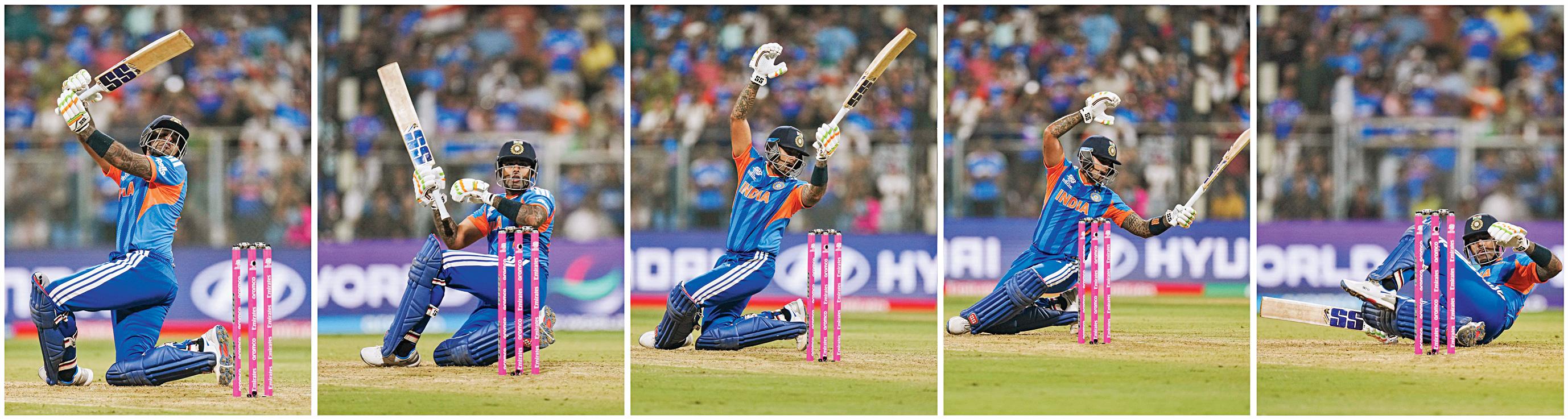 ત્રીજા ક્રમે રમીને શરૂઆતમાં ધીરજપૂર્વકની ઇનિંગ્સ રમ્યા બાદ કૅપ્ટન સૂર્યાએ ૧૭૧.૪૩ના સ્ટ્રાઇક રેટથી શાનદાર બૅટિંગ કરી હતી. તેણે ૪૯ બૉલમાં ૧૦ ફોર અને ૪ સિક્સની મદદથી ૮૪ રનની નૉટઆઉટ ઇનિંગ્સ રમીને મજબૂત સ્કોર કરવાની સાથે ભારતીય ફૅન્સના ચહેરા પર સ્મિત લાવવાનું કામ કર્યું હતું. T20 વર્લ્ડ કપમાં ભારતીય કૅપ્ટન તરીકેની વર્લ્ડ કપ ડેબ્યુ ઇનિંગ્સમાં તેણે હાઇએસ્ટ સ્કોર નોંધાવ્યો હતો.