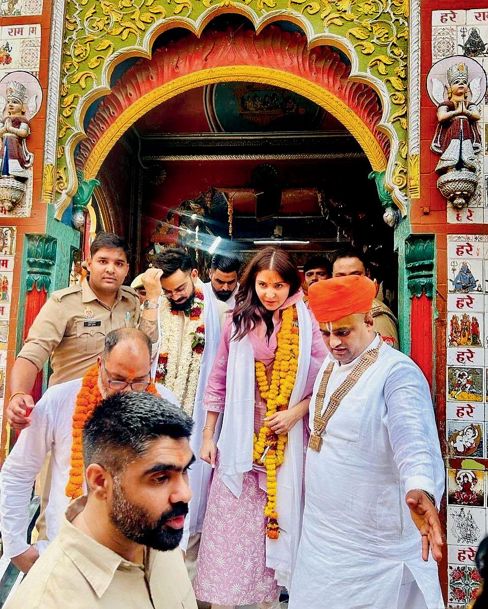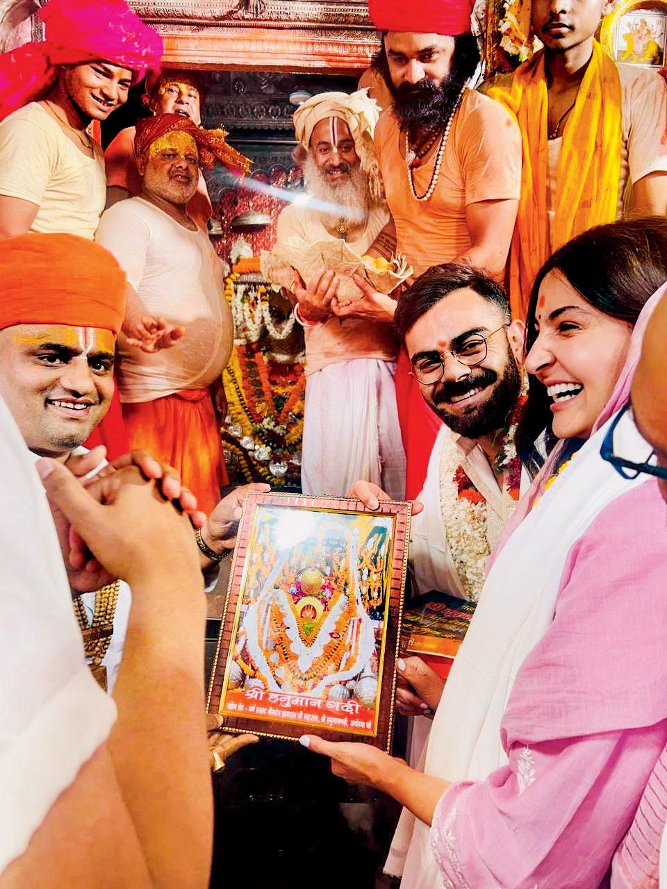 હનુમાનગઢી મંદિરમાં વિરાટ અને અનુષ્કા.