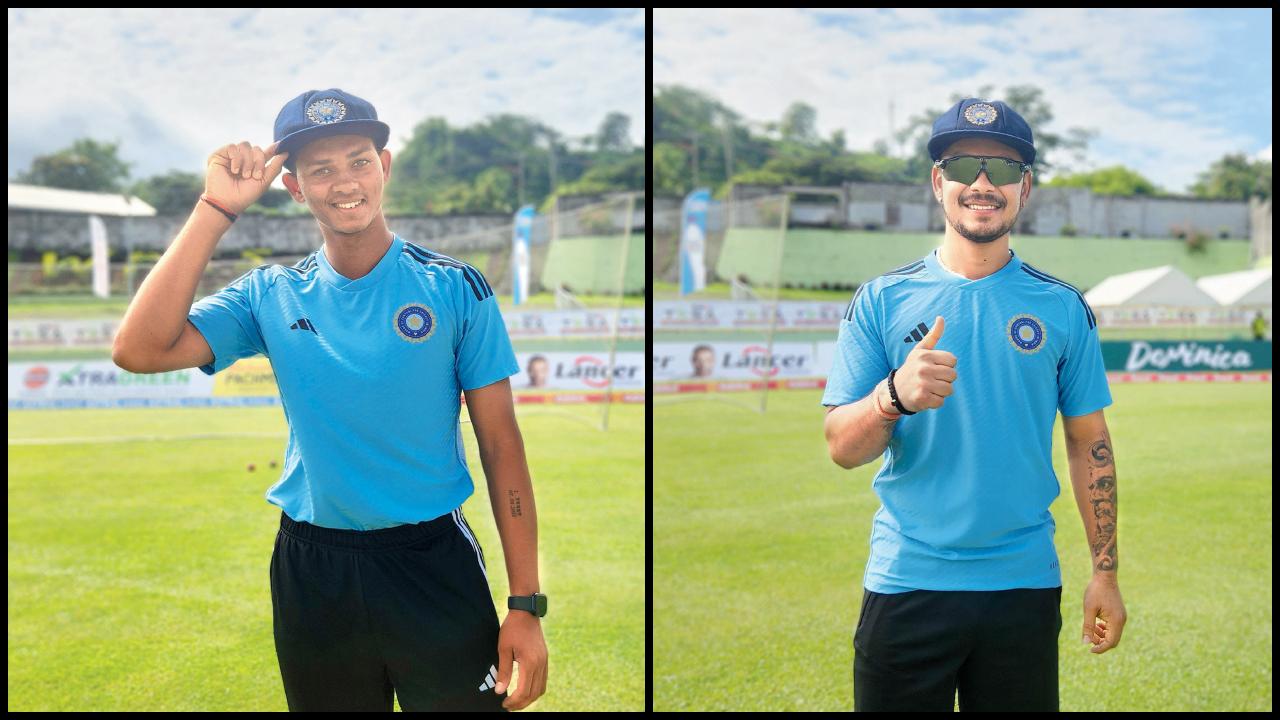 વેસ્ટ ઇન્ડીઝમાં ગઈ કાલે ટેસ્ટ-કરીઅર શરૂ કરતાં પહેલાં યશસ્વી જયસ્વાલ અને ઈશાન કિશન. તસવીર twitter.com