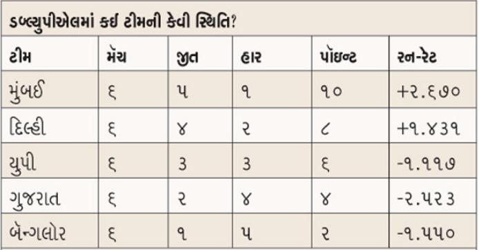નોંધ : તમામ આંકડા ગઈ કાલની ગુજરાત-બૅન્ગલોર મૅચ પહેલાંના છે. દરેક ટીમે ૮ લીગ મૅચ રમવાની છે.