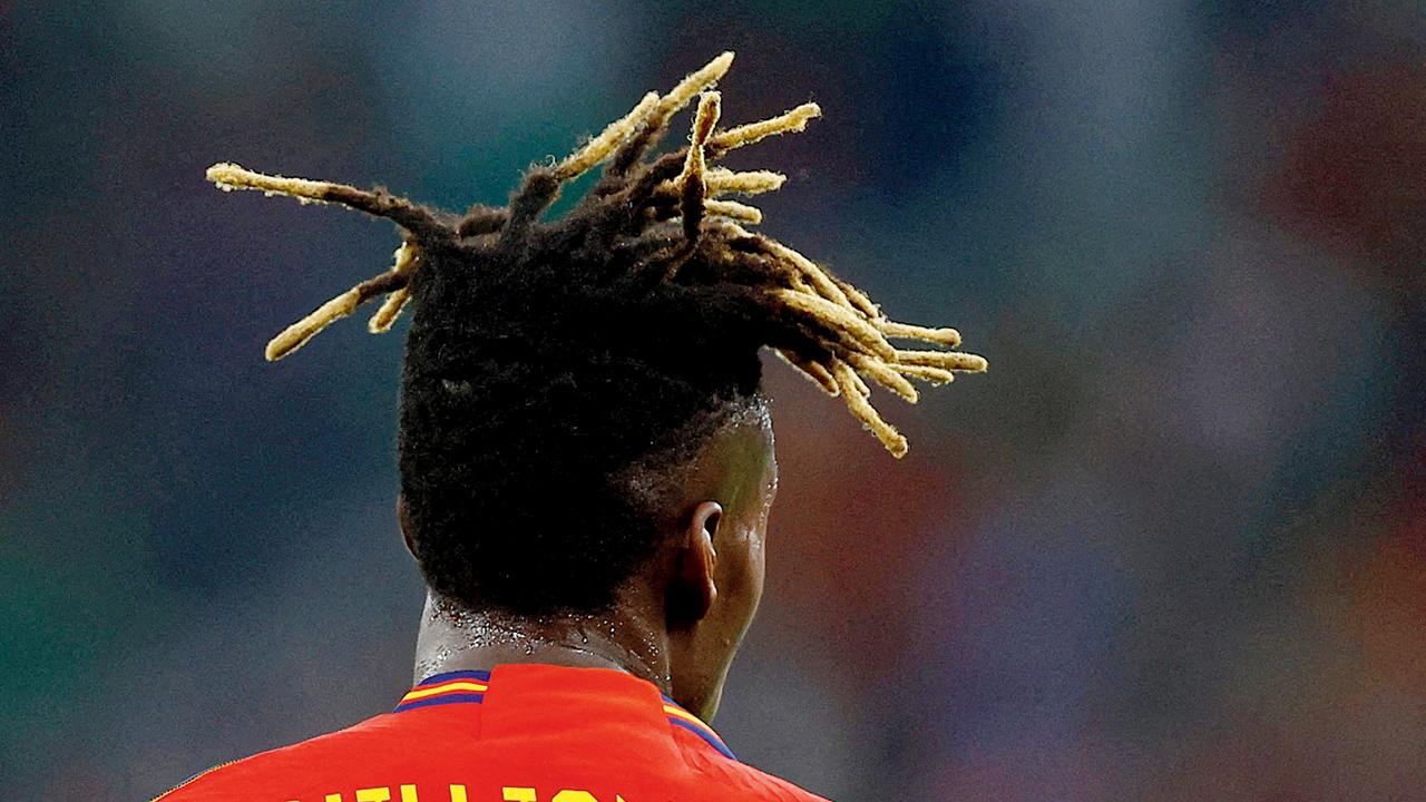 બુધવારની મૅચ દરમ્યાન અનોખી હેરસ્ટાઇલમાં સ્પેનનો નિકો વિલિયમ્સ. તસવીર એ.પી.